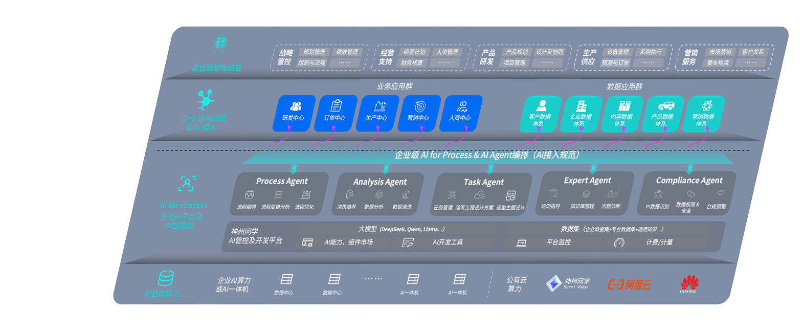 银河集团问学智车解决方案是一套基于AI技术的汽车行业智能化系统,,,覆盖从底层算力到顶层AI应用的全栈方案。。。方案由算力层、、、模型层和应用层组成:算力层,,,,方案支持多种一体机配置,,,,具备云端灵活部署、、、、多云适配以及动态优化计算资源的能力;模型层,,银河集团问学平台版提供了企业级AI应用一站式构建与管理平台,,支持基于后训练强化技术的汽车企业专属模型的训练、、、、评测和运营;应用层,,,银河集团问学DeepSeek版提供包括超级员工、、智能招采、、、、智能营销、、智能客服、、、AI for BI等一系列解决方案,,,,可助力汽车行业实现数字化转型,,,,让管理更智能、、、响应更敏捷。。